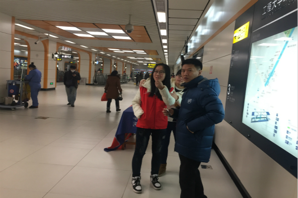 志愿者们冒着刺骨的寒风准时到达地铁站,在获得地铁站站长开办活动的许可后,志愿者们便饱含热情地开展活动。各位志愿者积极地讨论以及分配自己的工作岗位,最终确定一套最合适的方案。在一个小时的志愿服务中,各位志愿者坚守岗位,有人为他人指明出口、有人在地下二层维持上下车乘客的秩序、有人在买票口帮助他人顺利购得车票。