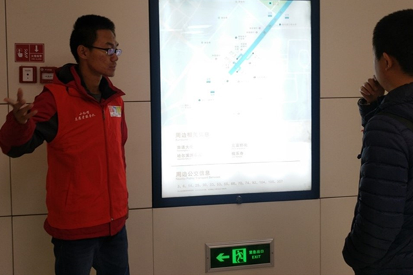 上午8点,下午4点半,唐登高、冒刘鹏分别带着20170111、20150111团支部到地铁站。在完成报道后,开始协助工作人员展开服务工作。各团支部被分为两部分,一组前往售票处,主动帮助乘客解决关于购票与路线的问题,并在机器出现问题后,主动引导乘客去人工售票处完成购票。另一组成员在出战口服务,协助乘客有序出站,解决部分乘客不熟悉检票流程的问题,以及出站口的指引,帮助行人解决路线问题。