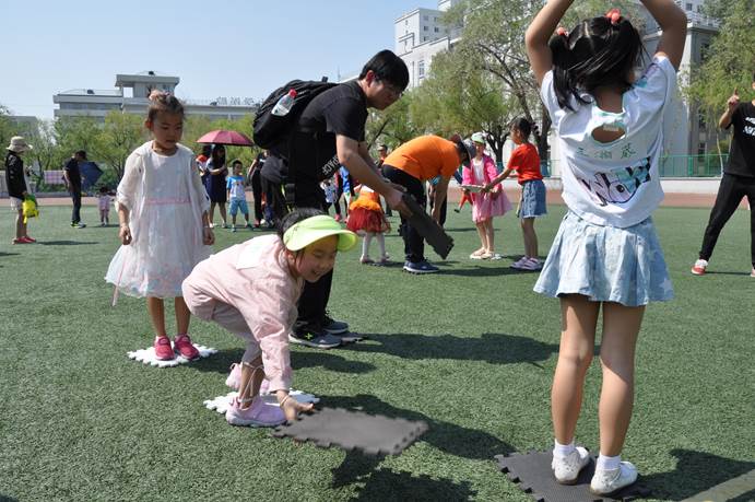 此次运动会根据孩子的不同年龄段特色及兴趣特点,设计了各类体育项目及游戏环节。亲子接力、我是小姚明、齐心协力过小河、小脚踩大脚等一系列游戏,既让孩子们体会到了做游戏的欢乐,同时也在游戏中增强了孩子和父母之间的默契,让家长在游戏中感受与孩子之间的心灵触碰。教师们积极参与每一个游戏活动,体验游戏的快乐,感受童年的乐趣,享受与孩子嬉戏玩耍的快乐时光。此外,我们还为小朋友们准备了丰富的零食、玩具等,让孩子们度过一个难忘的六一儿童节。两个小时的趣味比拼,小朋友们顺利完成了比赛任务,得到了心仪奖品,南体育场充满了孩子们欢乐的笑声,至此活动也告一段落。