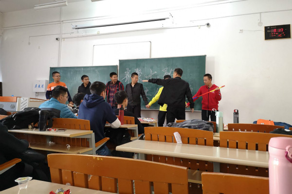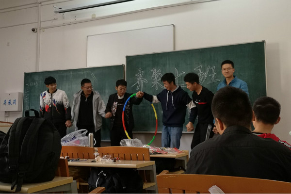 此次团活内容丰富。首先团支书段传智做开场并介绍入党事宜,然后由同学们按照学号先后依次介绍自己和家乡的美食、风俗,让同学们加深对彼此的了解。而后进入游戏环节,同学们6人一组,手拉手一字排开,在穿越呼啦圈的同时不能松开别人的手,用时最短的队伍获胜。通过3次激烈的角逐,冯睿,贾达洋,李洺燃,梅宇轩,陈盼召,毛同跃组用时9.2秒,获得冠军。教室中洋溢着同学们的欢笑声和喝彩声。最后,班长周泽宇对团活做以总结,宣布团活正式结束。