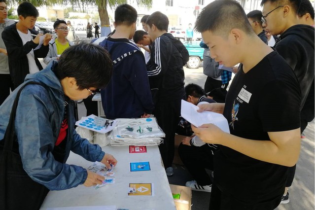 9月28号,20170114团支部在学校奥列霍夫广场东侧举办争做工程环保小卫士二期活动,上午10点,报名本次活动的志愿者做好准备工作,摆好桌子,张贴好海报,准备好各式各样的小礼品。