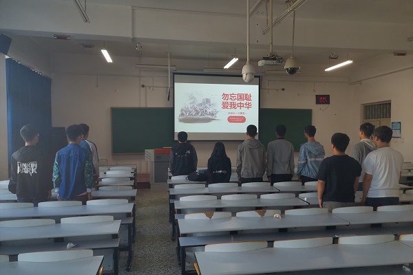 活动分为两个部分。首先为了纪念这个九一八事变八十八周年,同学们一起合唱了国歌;接着,团支书进行了“勿忘国耻,爱我中华”的ppt演讲,并邀请了同学们一起朗读ppt上的内容。从演讲里,同学们了解到了九一八事变的背景,其经过,影响和给我们带来的启示。除此之外,团支书还强调了九一八事变仍然是我们必须铭记的历史,大家应该为国、爱国。