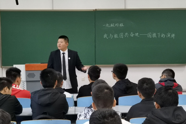 团日活动开始,支部全体起立,齐唱国歌与团歌。十分钟后,演讲同学紧扣着习近平总书记在纪念五四运动一百周年重要讲话中的精神,围绕社会主义新时代老员工的责任与使命进行演讲,向新中国七十华诞献礼,旨在突出展现当代青年与祖国同呼吸、共命运、心连心的爱国主义情怀。其后,支部开展了关于新中国成立以来诸多政治,科学,国防的重大事件,伟大进展,突出贡献人物的知识问答,旨在一同学习建设者们的奋斗精神,牢记初心,不忘使命。全班同学参与了本项活动,柴天航同学最后获得优胜。活动最后一项,支部全体成员起立,在领诵同学的带领下,齐朗诵艾青《我爱这土地》,学习优秀爱国主义文学作品,感受时代洪流。最后,由张光明对本次以“建国七十周年—在国旗下的演讲”为主题的团日活动进行总结,并宣布团日活动结束,组织同学们有序离开。部分班委留下打扫教室。