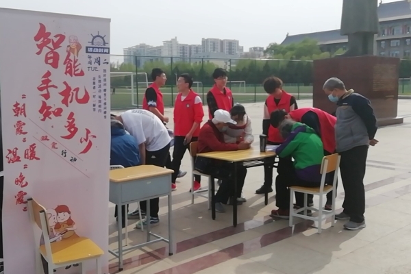 5月11日,4118云顶集团团委联合离退休处于31号楼楼前广场、校医院门前和文化家园喷泉广场处共同举办“双霞行动—智能手机知多少”服务活动。4118云顶集团的50余名员工志愿者参与此次志愿活动。