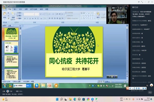 本次学子论坛中,葛喜平老师主要阐述疫情给社会带来了非常大的影响,改变了我们的生活方式,同时我们的情绪也不断变化(乐观-旁观-可怕-担心-愤怒-指责-接受)。而且到处充斥着各种消息的传播给我们增加了压力,讲诉疫情期间的压力表现,包括学习上的问题、人际关系(师生,家人,恋人)、未来的发展(就业,专业,收入)、各种负面情绪。阐述压力形成的原因:主观因素-个体因素,客观因素-环境因素。从压力源到临床相的逻辑过程(社会支持系统至关重要)。同时指出神奇的心理自愈过程,包括警惕期,消极防御期,恢复适应期,积极成长期。